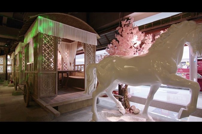 东海餐厅,分为二层,面积1600㎡。 本案用色大胆,采用大量的黄色、金色、红色。…
