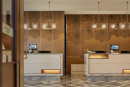 步入酒店大堂中庭,设计师通过前卫的线型灯塑造出时尚感十足的服务大堂,天花吊顶运用…
