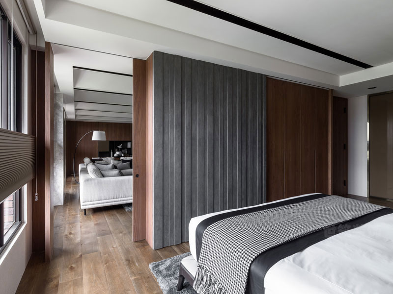 胡桃木的色块与整体的高级灰紧密衔接深邃而精致。