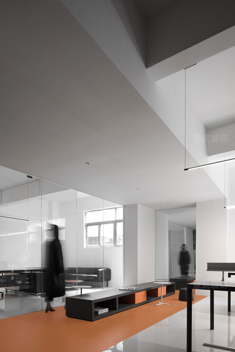橙色的入户,科技感十足的现代设计,白色地面的简洁,不加多余的装饰,却凸显出企业文化的真谛。