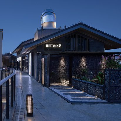 下方设有水景观,餐馆如同被山水河包围一般宏伟