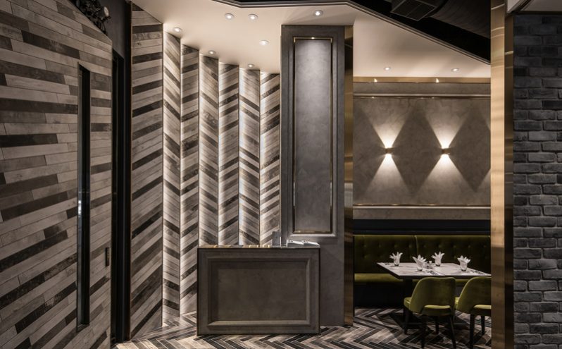 复古餐厅装修,复古的味道。现在很多人吃饭,吃的就是一种气氛,一种情调,所以对于餐厅来说,对自己的定位很重要,做好了很多前期的规划和设计,同样也是吸引顾客的重要方法。本案是位于昆明官渡区红云路的一家餐厅的装修设计案例,整体是以复古的风格来进行设计装修的,给人有一种中西融合,混合古今的一种表达方式,更像是一种混搭的风格,但是混搭得很协调,没有格格不入的感觉,反而有那种高级感。整体灰色的基调,有着中式复古的青砖的墙面装饰,通用也有着偏西方的一些造型,还用上了现代的金属材质,好像几个来自不同世界的物品,搭配在一起之后,倒还觉得好看。