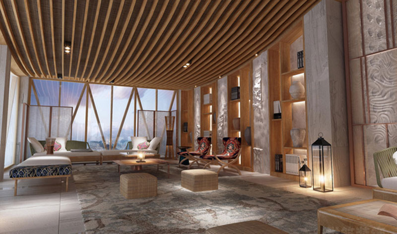 木材、石材是很多酒店必不可少的一种高档装修材料,特别是木材,在使用上不仅高档,而且给人很温馨,自然的感觉。本案是位于云南怒江酒店设计的一个案例,一个偏远的城市,与缅甸交界,由于气候原因,最不缺的也就是木材,所以本案大量运用了木材的造型和装饰,不仅让酒店显得格外的高档之外,还有一种少数名族特色的感觉,刚好酒店的外观也是非常的独特,再加上外面的游泳池,就像是电影里面的场景。