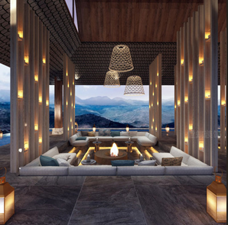 下沉式的会客区,悠闲 自在,望着远处的山景,真是有种山高人为峰的境界。