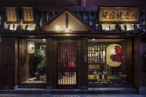 本案位于昆明官渡区的餐厅装修设计图,餐厅建筑外观是对称设计手法,灰度石材作纵横框架,局部空间是黑色框的门窗,暖…